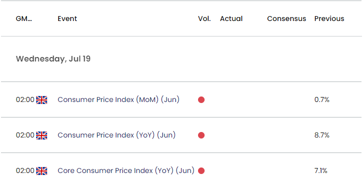 然而,在6月会议上出现72的分歧,英国CPI的大幅放缓可能会导致货币政策委员会(MPC)内部出现更大的分歧,而贝利行长及其同僚是否会在83日的下一次利率决议中改变前瞻性指引还有待观察,因为“CPI通胀预计将在今年进一步大幅下降